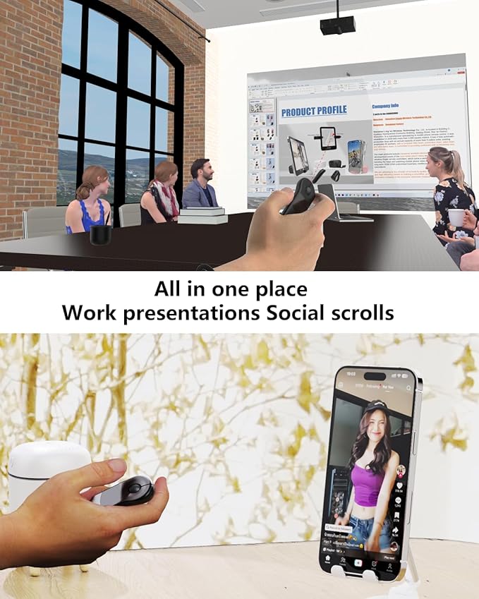- [Multiple application scenarios] Your ultimate presentation tool: From dynamic pointer control and digital whiteboarding to wireless photography and document navigation - one device handles all professional needs