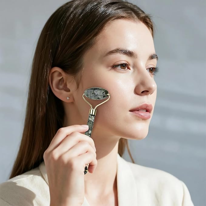 - COOLING SKIN - Using a facial roller to cool down skin can raise your spirits to work; Massage before makeup to eliminate facial and eye dropsy; Massage during mask caring to shrink pores and calm skin; Calm skin and reduce burns of skin after sun exposure; Prevent wrinkles and improve dry skin