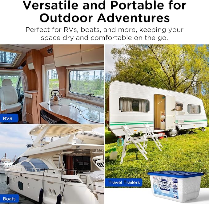 - Compact & Versatile Placement: These moisture absorbers for the closet, bathroom, basement, laundry room, refrigerator, RV dehumidifier, and even ships are small yet powerful. Their portable design lets you place them anywhere moisture is a concern.