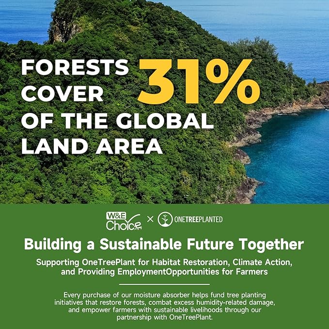 - Spherical & High-Purity Calcium Chloride: W&E Choice 12-pack moisture absorbers, featuring high-purity spherical calcium chloride for fast and effective humidity control. The unique spherical shape traps excess moisture quickly, making these humidity packs ideal for summer mold prevention and maintaining a dry environment.