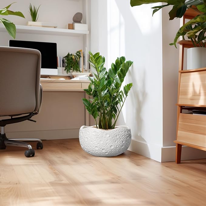 - Unique Design: This ceramic flower pot adopts the unique appearance design of the moon, with concave convex texture, that is both aesthetically pleasing and decorative, making it fit to your indoor or outdoor space decoration, suitable for various styles of home decor, room decor, bedroom decor, bathroom decor, living room decor, office decor, patio decor, porch decor, garden decor and more