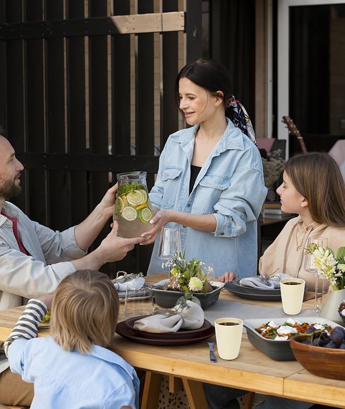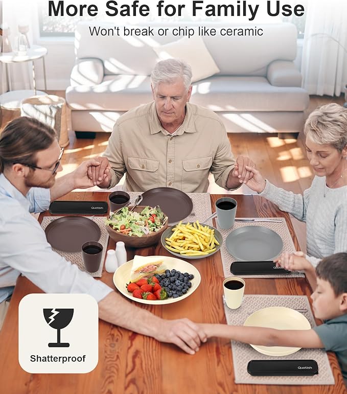 - Durable and Kid-Friendly: Nearly unbreakable, shatterproof plastic dinnerware set with raised edges, resistant to chipping, scratches, and wear-related damage. Ideal for camping, RVs, beach houses, and safe for toddlers and children