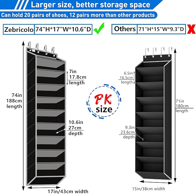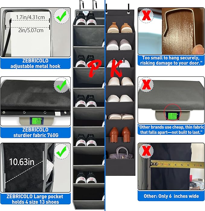 - over the door shoe organizer,Fits Size 13 Boots & More – Extra-deep pockets (10.63"D x 17"W) swallow work boots, gym shoes, or travel essentials—no more "shoe Messy.