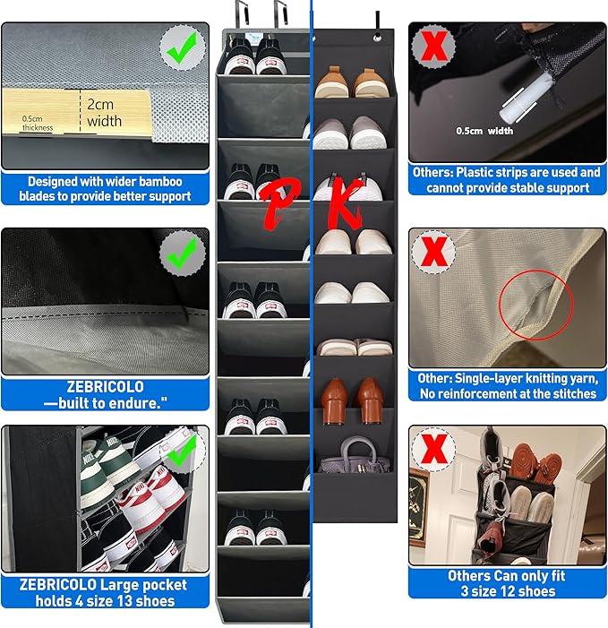 - over door shoe organizer,Engineered to fit men’s size 13 boots, bulky sneakers, and gear without sagging, our reinforced organizer combines premium FSC-certified bamboo panels and steel-core hooks to support 75 lbs—enough for 30 pairs of shoes. over the door organizer, , Unlike flimsy fabric racks, this zero-assembly design hangs securely in seconds and blends seamlessly with modern spaces.
