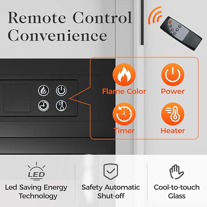 - Effortless Control, Elevated Safety: Operating this tv stand fireplace is as easy as 1-2-3-4 with its intuitive function keys. Prefer remote control? It's got you covered. CSA certification and smart overheating protection ensure your relaxation with complete ease.