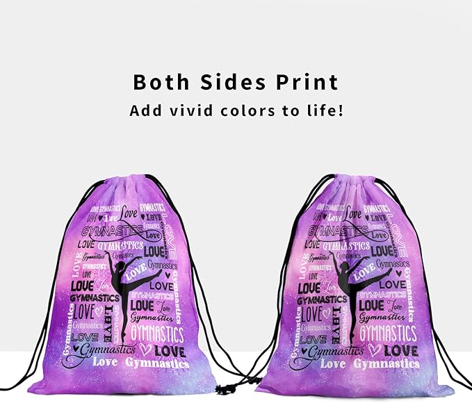 - Spacious capacity: 9.25 inches (w) x 12 inches (h). This cool gymnastics drawstring bag has enough capacity to store the personal items needed for exercise and fitness at ordinary times, such as grip, accessories, cosmetics, bottles, shoes, clothes, small electronic products, etc