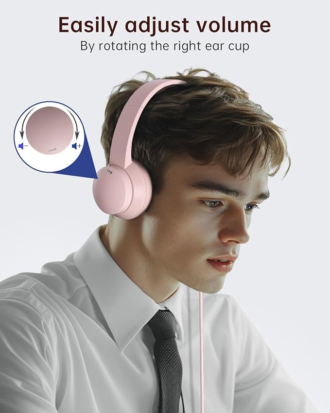 - 【USB A Connection & Easy Operation】This pink headphones for computer is plug-and-play, letting you easily adjust volume by rotating the right ear cup and mute the mic by lifting it 90°. The 6ft cable design eliminates wireless signal delay, ensuring you enjoy lag-free audio on your PC, laptop, tablet, Mac, iOS, and other USB A devices