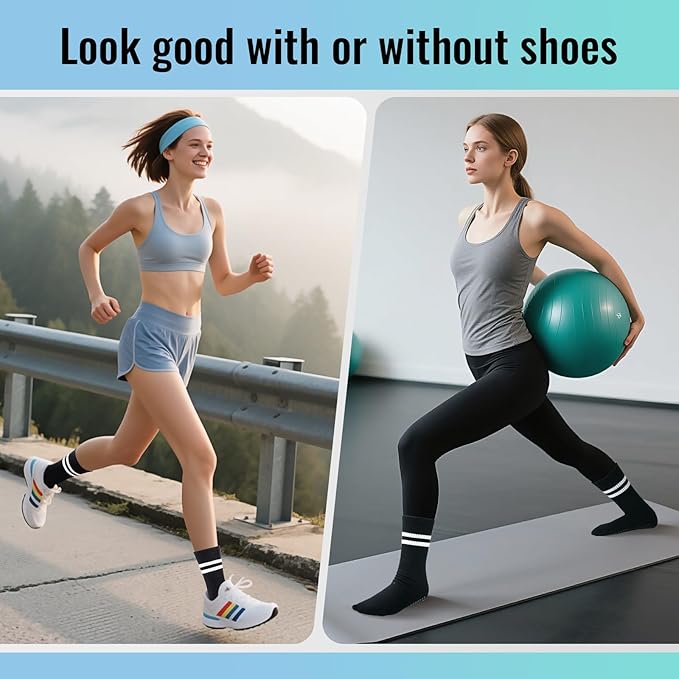 - [WOMEN ATHLETIC SOCKS]: Designed to look great whether worn with shoes, or barefoot, these grip socks seamlessly transition from indoor workouts (yoga, Pilates, weightlifting) to outdoor activities. Their sleek design and functional grip make them the perfect all-in-one choice for fitness and casual comfort.