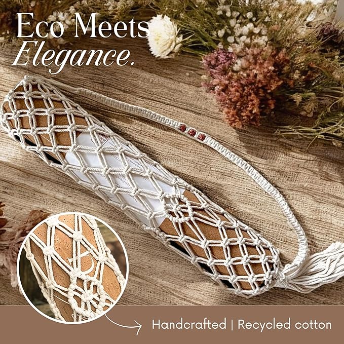 - STYLISHLY SUSTAINABLE - Every Luxe Leather cork mat comes with a handwoven Macramé bag, made from recycled cotton. Chic, eco-friendly, and plastic-free – a statement piece wherever your flow takes you.