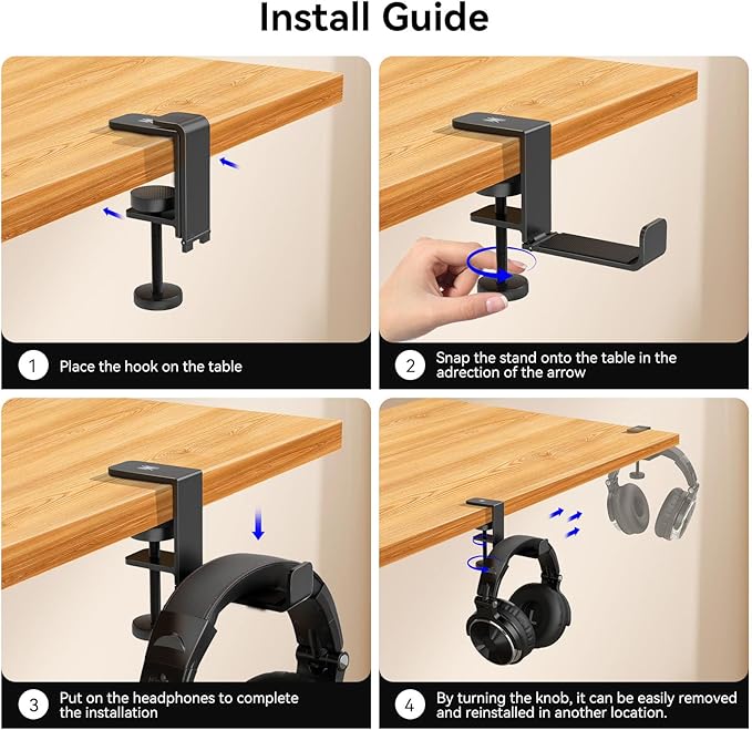 - Rubber Pads Protection: The headset Hanger features soft rubber padding to protect your headphones. Plus, rubber pads on the clamp ends prevent damage to your desk or table.