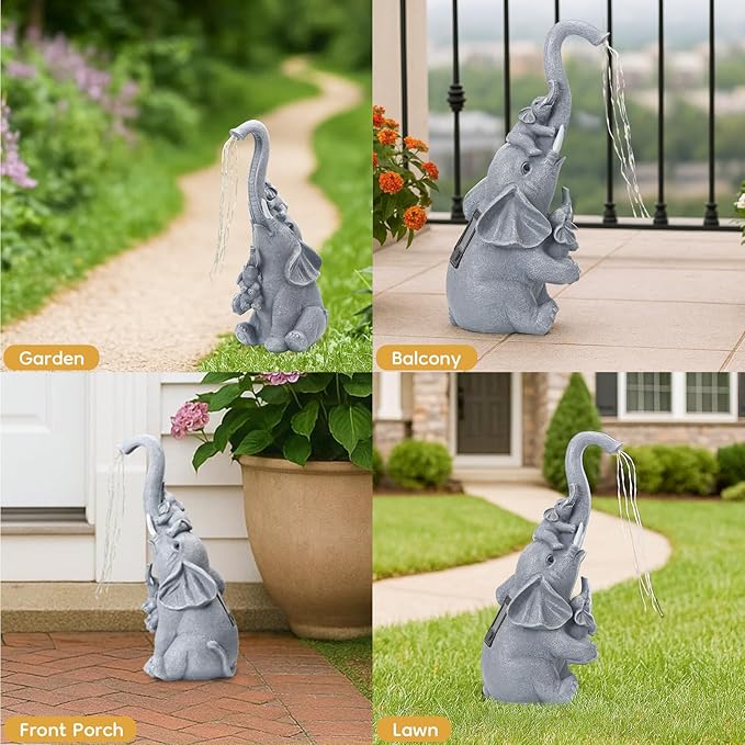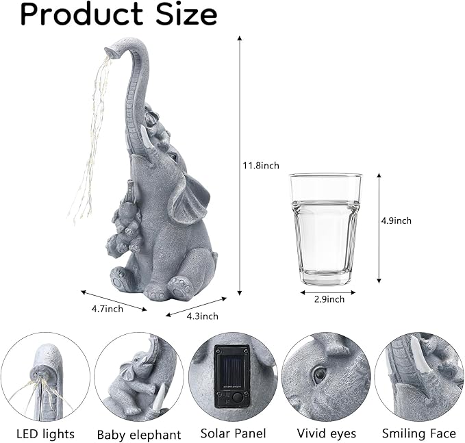 - 🎁【Zero-Mess Waterless Gift】 #1 holiday surprise! This elephant sets up in 60 seconds – just plant in sun. Kids adore the splash-free light show, adults love no-moss maintenance. Perfect for balcony , garden, lawn,front porch and dorms!