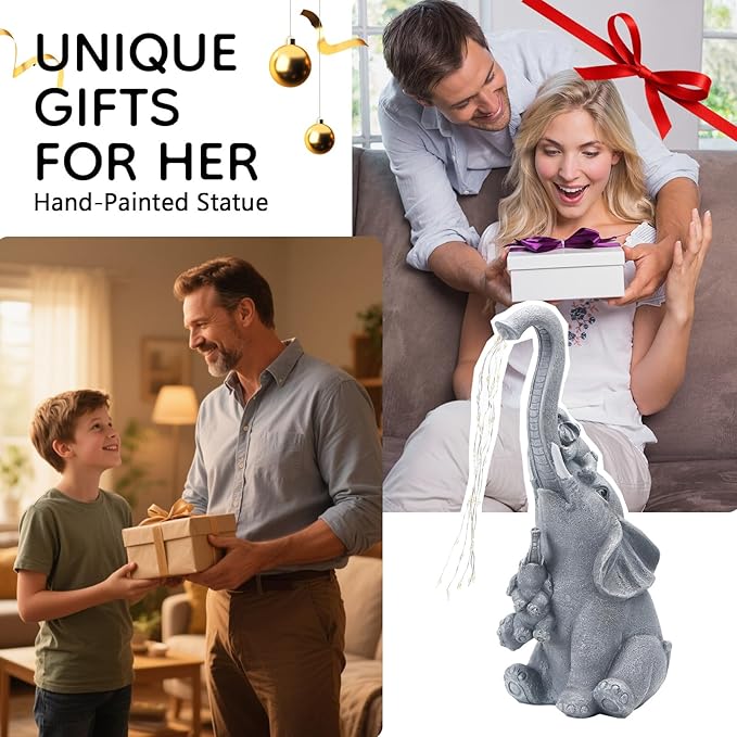 Solar Elephant Garden Statue Decor with Constant LED Lights - Lawn Patio Yard Balcony Lucky Elephant Ornaments,Unique Holiday Housewarming Gifts