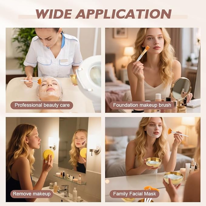 - ELEGENT DESIGN AND GREAT WORKMANSHIP: Our gold mask bowl is made of stainless steel for scratch and abrasion resistance; the fan-shaped makeup brush and flat mask brush are both made of nylon bristles that spread the sweeping surface well.Has a great quality that will last you longer. The mask bowl is a gold colored style with a smooth surface; the fan shaped makeup brush is a white plastic rod for a fresh and natural look; and the flat mask brush uses a clear plastic rod for simplicity.