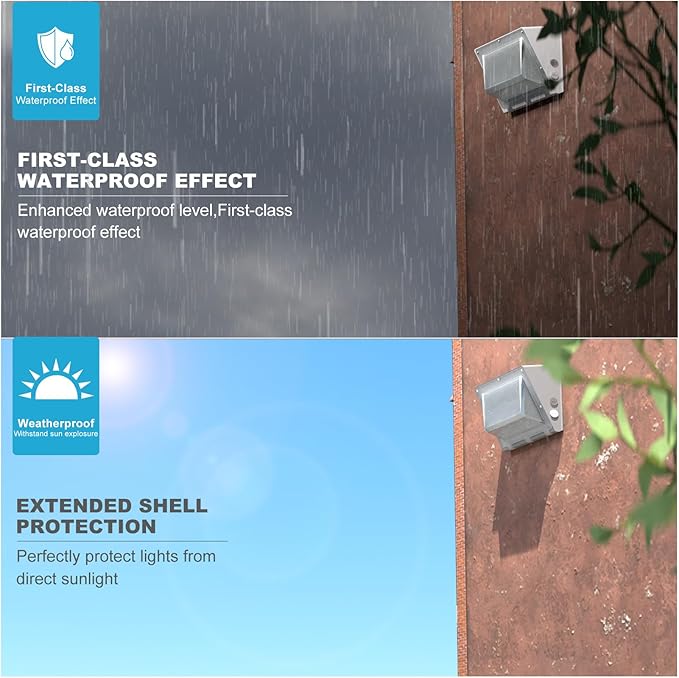 - Photocell Sensing 🌙 Dual-control LED wall packs automatically activate via dusk-to-dawn sensors (80% energy savings) with the option to disable the sensor and switch to manual mode as needed. IP65 ports prevent snow/rain infiltration in outdoor wall pack lighting installations, eliminating wasted energy in 24/7 parking garages and storage compounds.