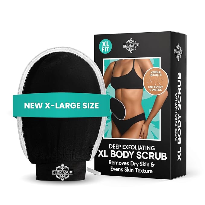 Dermasuri - Deep Exfoliating Glove - Korean Exfoliating Mitt - Reusable Body Scrubber for Shower - Buffs Dry Dead Skin - Keratosis Pilaris Treatment Scrub - Stocking Stuffer Gifts for Women & Men - XL