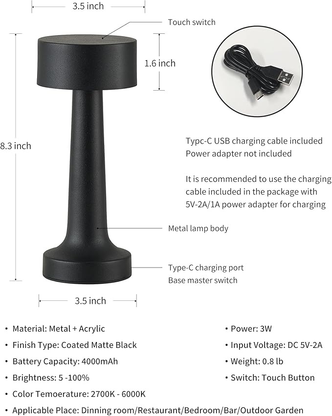- Cordless Portable Design: Convenient cordless design means no rope to hinder your movement; you can take it with you and set it down anywhere you need to use it. This table lamp has a moderate size and does not dominate visual space. Its simple yet stylish design adds a touch of elegance to your home. It is suitable for reading, working, studying, and relaxing, and can be placed on the dining table, in the bedroom, living room, balcony, patio, bar, camping site, and other locations as part of your home decor.