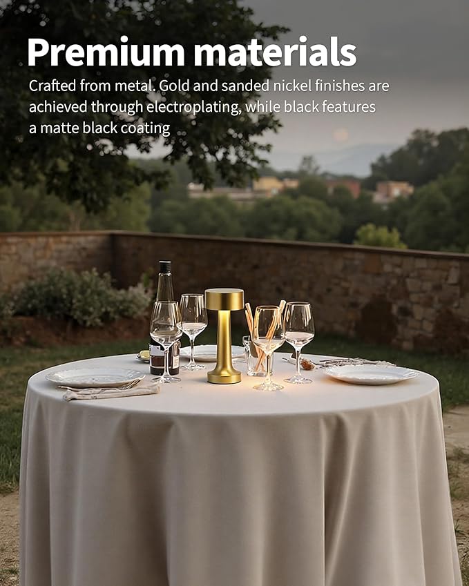 - Metal Material: The body is constructed from metal with a baked enamel coating to guard against scratches and corrosion. The gold/silver color models feature an electroplated surface treatment, offering both smooth and textured finishes. The lampshade is crafted from acrylic, allowing good light transmission that is not blinding and gentle on your eyes. The base has non-slip pads to avoid unintentional tipping. Besides being intended for indoor use, it is also appropriate for outdoor activities and camping.