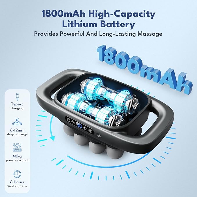- 【 Long-lasting & Ultra-Quiet】:High-quality motor, with noise reduction, shock absorption, and sound insulation triple barriers. Operating at just 30-40dB, it ensures ultra-quiet performance suitable for any environment, including home, office, or gym settings. Featuring Type-C fast charging and a robust 1800mAh battery, our new 8-head massager gun ensures up to 6 hours of uninterrupted use.