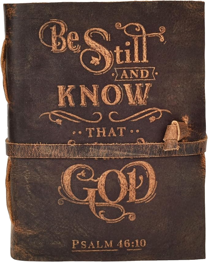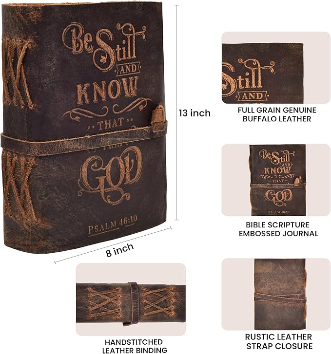 LEATHER VILLAGE Vintage Leather Journal with Psalm 46:10 Bible Verse–13''x8'' Embossed Prayer Study Journal for Women & Men – 200 Pages Handmade Cotton Deckle Edge Watercolor Paper - Brown