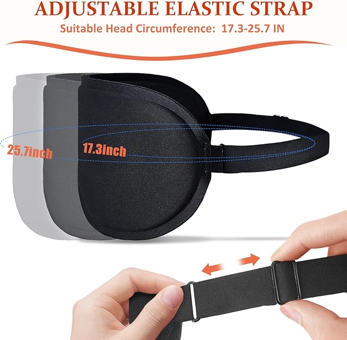 - đăFULLY ADJUSTABLE & UNIVERSAL FITă Features a wide, adjustable elastic strap that won't slip off or squeeze your head, try to minimize the pressure on your temples. The moldable nose bridge blocks out all light leakage. Ideal for all head sizes and sleeping positions, especially side sleepers.