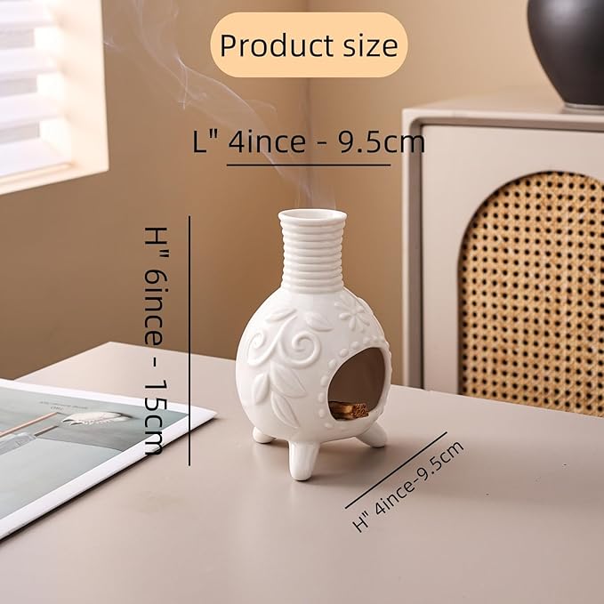 - 3D relief pattern Design: The Mini Chiminea stands out with its minimalist and contemporary incense functionality. Cute little burner. put in small pieces of cedar as a mosquito deterrent. It works great. The aroma is very soothing. It does get hot to the touch.(in the work)