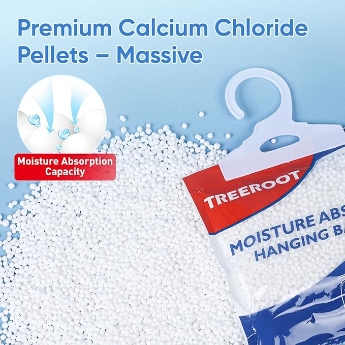 - 【Efficient & Long-Lasting Moisture Absorption】Say goodbye to dampness! TREEROOT Moisture Absorbers - 24 packs bring lasting dryness and freshness to your living space. Made with high-purity spherical calcium chloride, they offer a large moisture-absorbing area and fast absorption speed! Effectively protect your clothes and belongings from moisture damage. Please use continuously for at least two weeks or more.