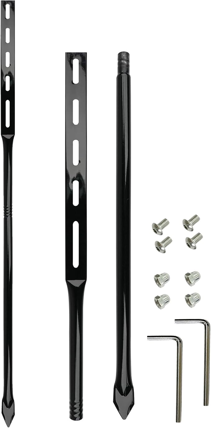 - COMPLETE KIT: Includes 2 metal stakes with pre-drilled mounting holes plus all necessary mounting hardware and hex wrenches