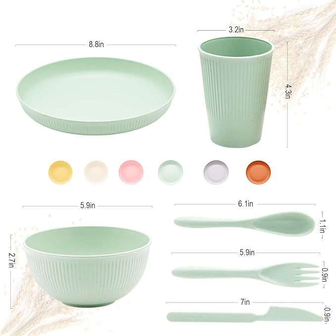 - ๐๐ง๐๐ซ๐๐๐ค๐๐๐ฅ๐ ๐๐ก๐๐๐ญ ๐๐ญ๐ซ๐๐ฐ ๐๐ข๐ง๐ง๐๐ซ๐ฐ๐๐ซ๐ ๐๐๐ญ: Made from food-grade wheat straw and BPA-free PP, this unbreakable set of plates and bowls can withstand daily drops. Includes 6 kid-friendly sized plates, bowls, cups, knives, forks & spoons