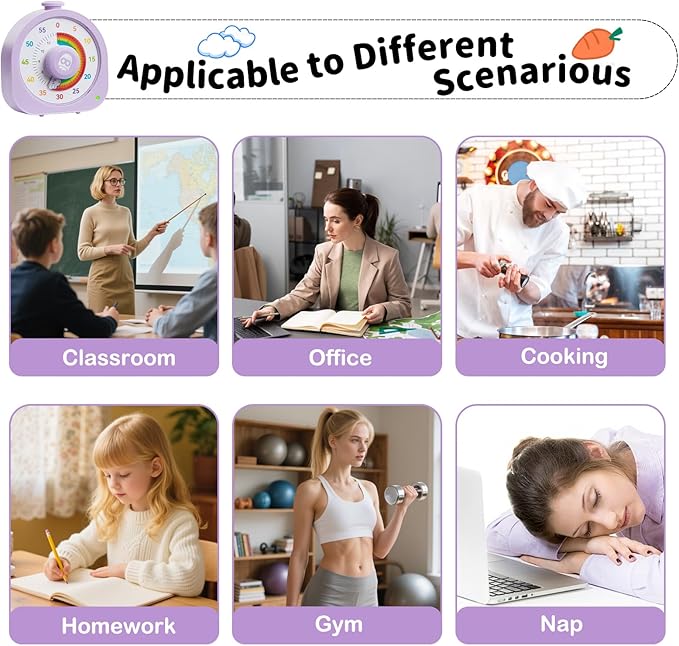 - ๐ Whisper-Quiet Timer โ This no-tick kids timer operates completely silently, perfect for libraries and noise-sensitive environments. Timer is distraction-free design ensures total concentration during study/work. Countdown timer helps children/adults develop time management skills effortlessly.