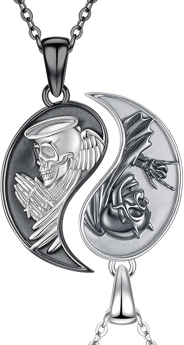 - Design Inspiration: This Yin Yang necklace set balances life and death. The angelic skull represents peace, while the devilish heart signifies a rebellious spirit. Two halves of a whole, they show how opposing forces can coexist and complete each other