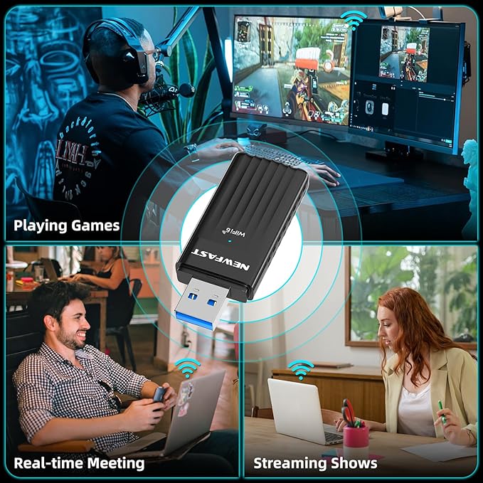 - 【WiFi 6 Dominance | Crushes AC Standards】This USB WiFi 6 adapter leverages cutting-edge 802.11ax protocol, delivering 3000Mbps via dual bands wifi 6(2.4/5GHz). 3X faster speeds than AC1200. OFDMA+MU-MIMO efficiently serves 20+ devices simultaneously – stream 4K, game competitively with 3ms latency, and control smart home gear without lag.
