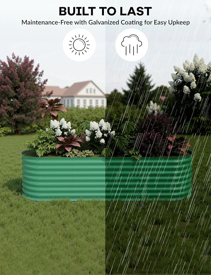 - 【2 Pack Premium Galvanized Raised Garden Bed】Our heavy-duty raised garden bed features 18/24 in elevated sides - taller than standard garden boxes for better root growth. Constructed with weather-resistant galvanized steel and internal supports, this planter raised bed offers superior durability for outdoor use.