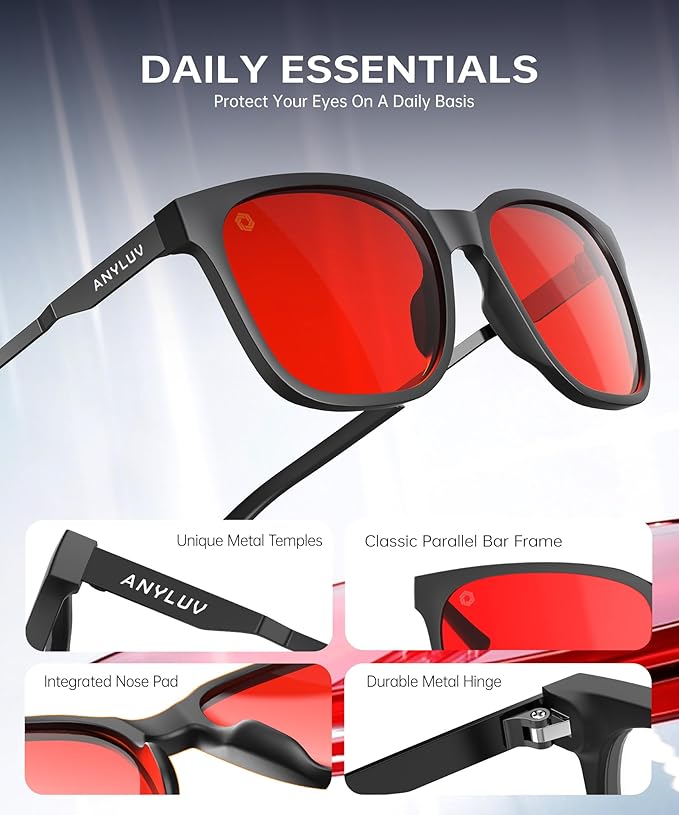 - EYE PROTECTION: With the increasing use of digital devices, protecting your eyes from high-energy blue light is crucial. ANYLUV blue light blocking glasses offer a reliable solution to reduce the risk of discomfort and long-term sight conditions, ensuring your eyes stay healthy and refreshed.