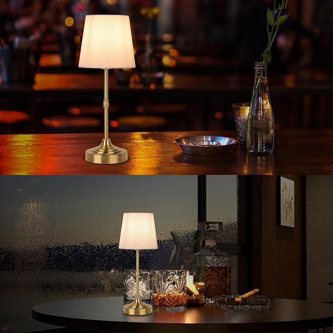 Cordless Rechargeable Table Lamp 5200mAh - Stepless Dimming & 3-Color Temperature, Touch Control Bedside Lamp with Fabric Shade for Bedroom, Patio, Camping, Balcony (Gold)