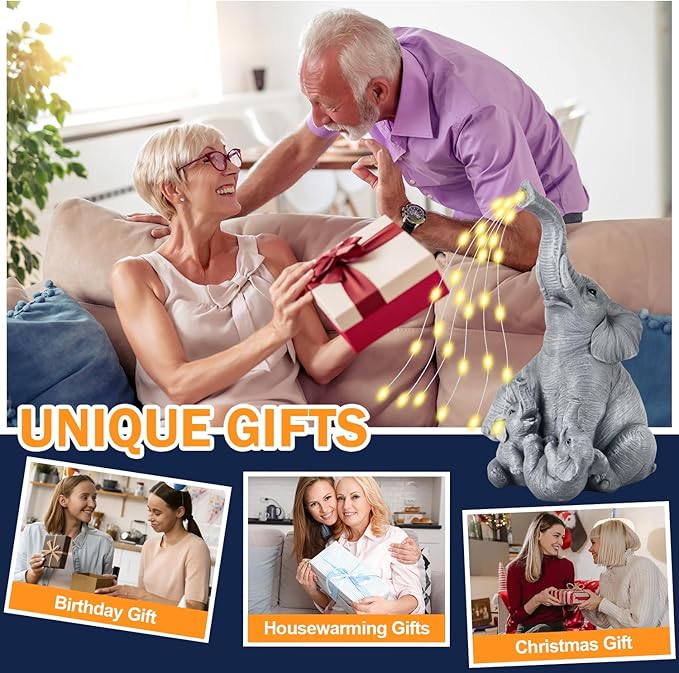 - Perfect Gift Choice for Loved Ones: This elephant statue with solar lights makes a thoughtful and heartwarming gift for family and friends. Suitable for multiple occasions such as birthdays, Mother’s Day, Christmas, Thanksgiving, or housewarming, it’s especially cherished by moms, grandmas, and women who love garden decor. Its symbolic meaning of love and protection makes it more than just an ornament—it’s a special keepsake.