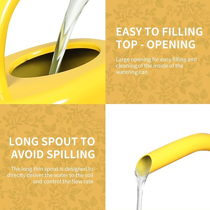 - [Long Precision Spout] Our watering can for indoor plants comes with a long, narrow spout that effortlessly reaches deep into plant roots, even under dense leaves. It delivers water precisely to target areas, avoiding splashing or overwatering—perfect for indoor plants, bonsai, and hard-to-reach spots in gardens. The fixed spout (non-removable) ensures stable water flow, making every watering efficient and mess-free.