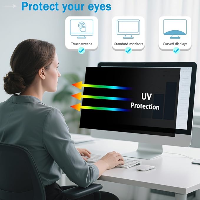 - 【Eye Comfort】Protect your vision during long work hours. Our computer privacy screen uses advanced optical materials to effectively filter blue light and eliminate glare. This combination significantly reduces eye strain and fatigue, ensuring comfortable viewing and enhanced focus.