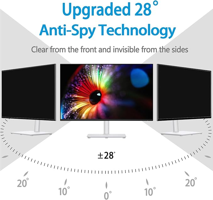 - 【Total Privacy】Safeguard your sensitive information with our advanced privacy screen filter. Utilizing micro-louver technology, it limits the viewing angle to +/- 28°. Enjoy a clear screen from the front while side views appear completely black, preventing visual hacking in offices, cafes, and airports.