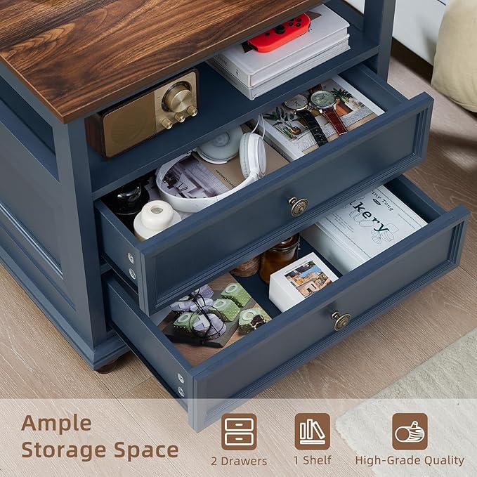 - [Thicken Packaging & Easy to Install]In order to deliver the rustic nightstand to you in perfect condition, we use thick foam, protective paper, and sturdy cardboard. This blue bedside table comes with clear installation instructions and diagrams. Each accessory is labeled and you can easily and quickly install this end table with drawer according to the manual.Note: The product does not come with installing toolkit.