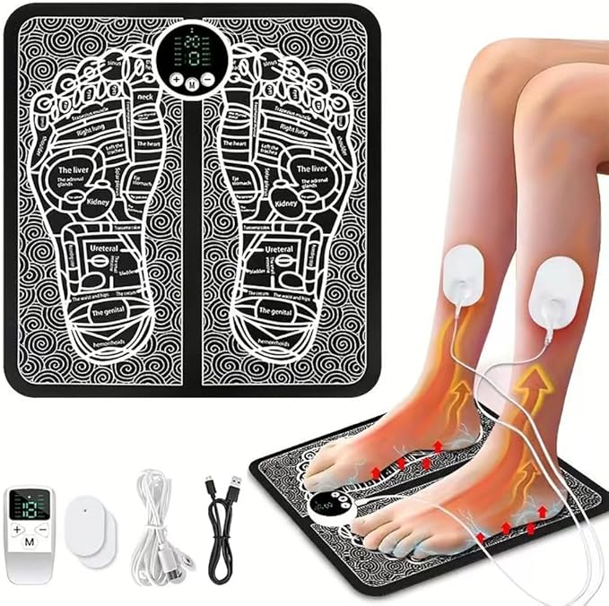 - Through Transcutaneous Electronic Nerve Stimulator technology, this product is designed with a foot mat as electrodes to stimulate your feet, ankles, achilles tendons as well as temporary relief of pain associated with sore and aching muscles,Relieve plantar fasciitis。