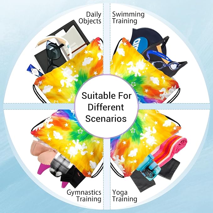 - Multi function:This tie dye gymnastic drawstring bag is a true all-rounder, perfect for home, gym, gymnastics, sports, dancing, swimming, travel, beach trips, concerts, luggage organization and various events. It excels at storaging small items like gymnastics scorecards, towel and chalks. Moreover, it can serve as a toiletry bag, easily meeting your daily and travel needs