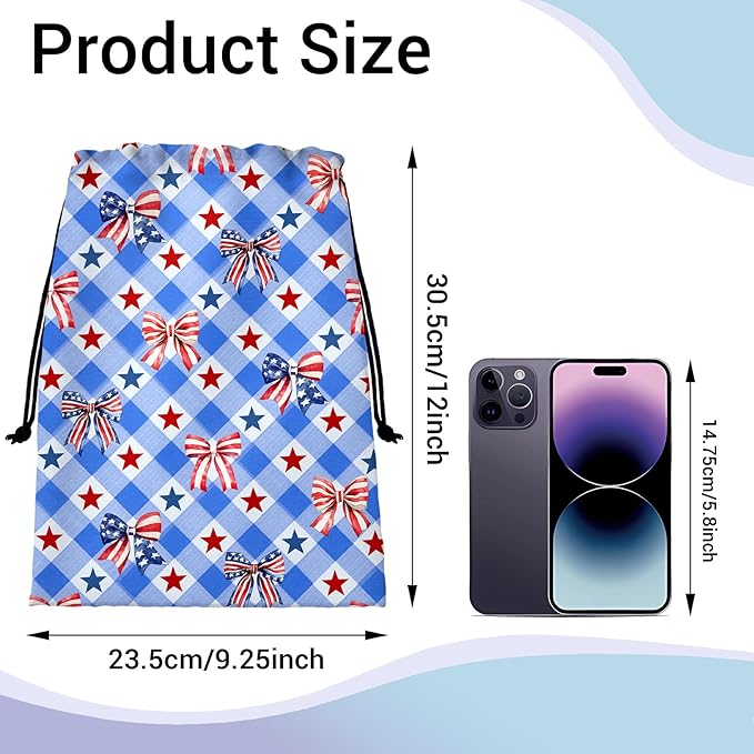 - Perfect size: With a width of 9.25 in (23.5cm) and a length of 12 in (30.5cm), this blue red bowknot bag is moderately sized. It can hold quite a few small items without being too bulky, making it very easy to carry. Lightweight yet roomy, it won't weigh you down during walks to the gym or competitions, making it ideal for daily training and travel