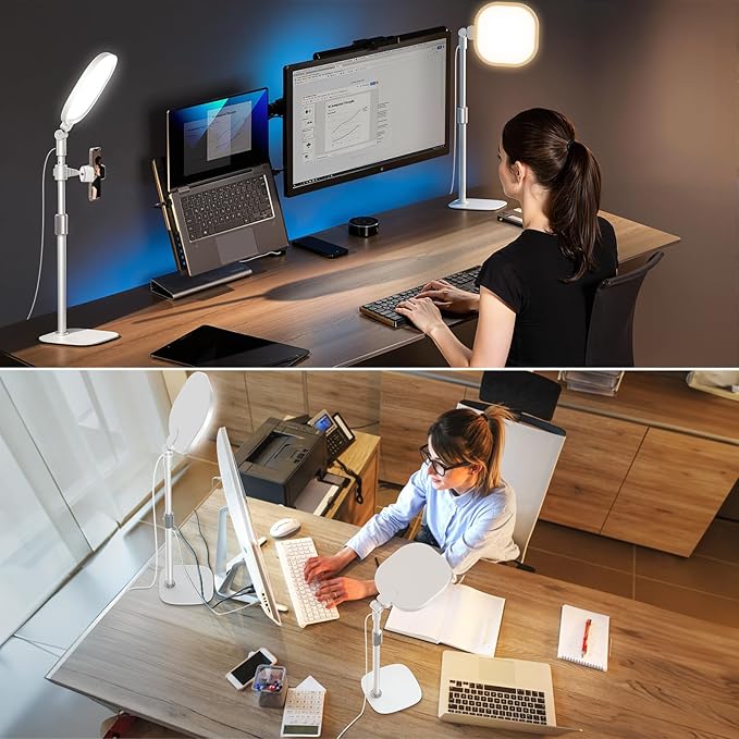 - Versatile Desk Lamp for Home Office: Combining style and functionality, this desk ring light enhances your video conferencing, Zoom meetings, and video calls by brightening your image presentations. It's ideal for remote work, office setups, study areas, video recording, live streaming, makeup, selfie, Instagram, logging, gaming and any scenario requiring enhanced lighting. Committed to delivering the best zoom lighting, we offer a 3-year after-sales service for your peace of mind