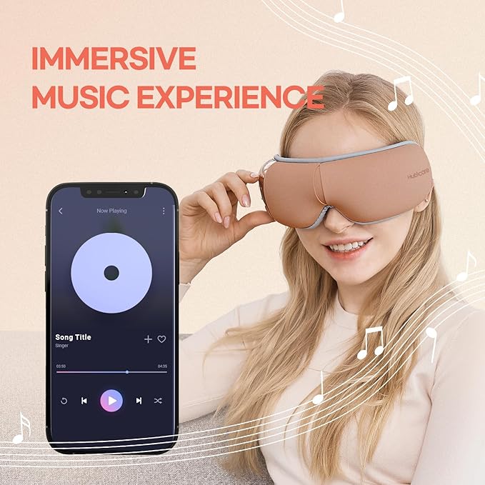 - 【Reduce Eye Strain & Improve Sleeping】HubiCare eye massager adopts oscillating pressure and rhythmic percussion massaging, it can make the skin around the eyes more shiny and elastic. HubiCare heated eye mask with comfortable and stable music can play a good sedative effect. Wear it for 15 minutes before going to bed every night, you will be totally relaxed and enjoy a better sweet dream. Our eye care machine also can effectively help you be refreshed after long-day work or study.