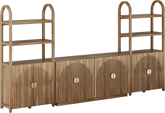 - Ample Storage & Display: Two tall storage cabinets and a central tv console provide versatile media storage. Inside, adjustable shelves and smooth-glide compartments keep entertainment components, books, or decor organized and out of sight—ideal as an entertainment center with storage or a credenza storage cabinet.