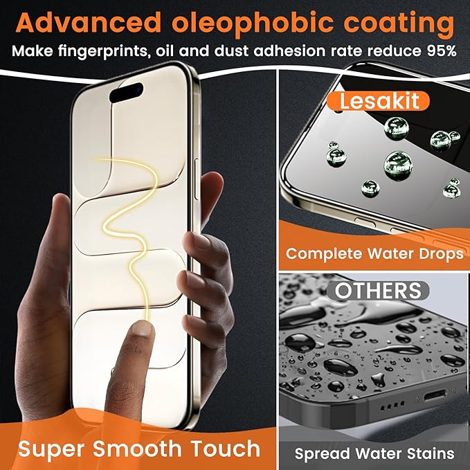 - 【Scratch Resistant, Anti-Fingerprint】100% new precise laser cut tempered glass, with 9H hardness tempered glass, protecting your screen from daily wear and tear like. This privacy glass screen protector is coated with a Hydrophobic and oleophobic clear layer making it anti-fingerprint and smudges
