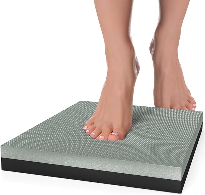- 【Non-slip Texture and Easy to Clean】Lightly textured to provide a nonslip surface that is safe for use barefoot or with shoes, the balance pad also has a textured nonslip base to prevent slipping and sliding while in use. foam balance pad is also water-resistant, repelling sweat. Easily clean the balance pad with a damp cloth and mild detergent before drying with a lint-free cloth.