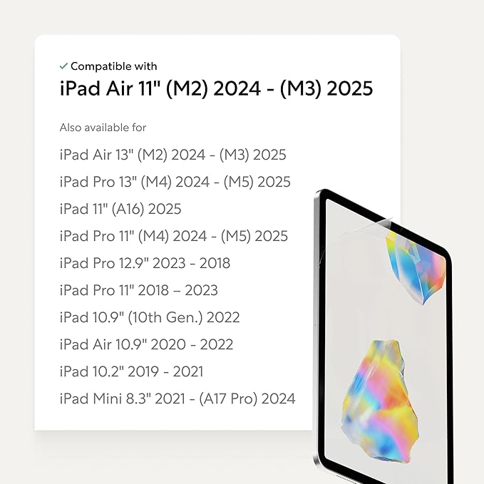 - Screen protection built-in: The durable PET layer shields your iPad display from scratches and scuffs, keeping your screen protected, and ready for whatever you create next.