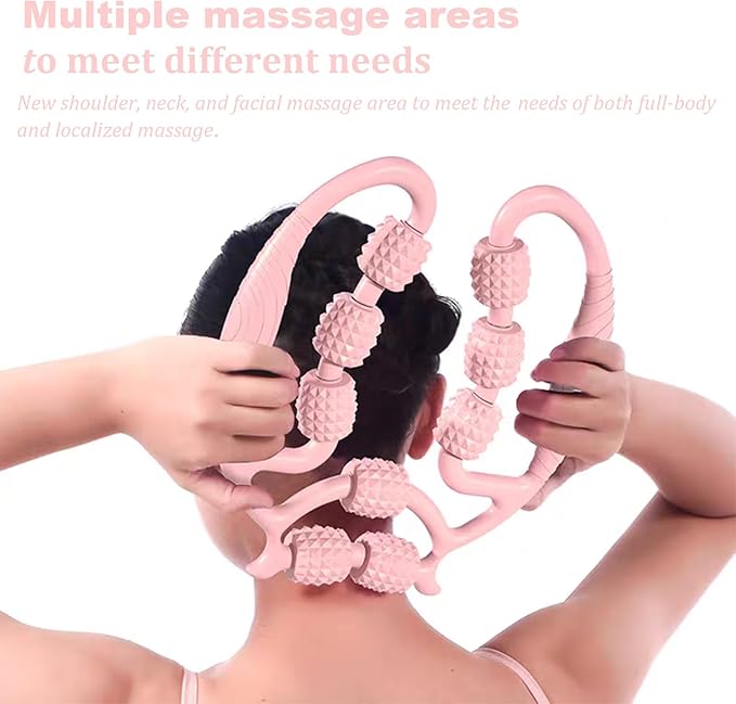 9 Wheel Leg Massager Roller for Lymphatic Drainage & Cellulite, Muscle Massage Stick for Deep Tissue Pain Relief, Body Sculpting for Thighs, Legs, Waist, Arms - Pink
