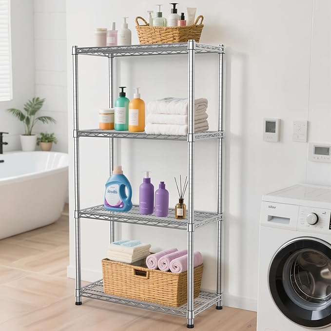 Metal Shelving Unit 4 Tier Storage Shelves Rack Metal Shelf Adjustable Wire Shelving Units Storage Shelving Heavy-Duty 2200 LBS rganizer for Pantry Garage Laundry Bathroom Kitchen Closet Utility Room